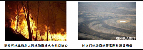 由上述幾例森林火災(zāi)可見,森林火災(zāi)是一種突發(fā)性和破壞性極強(qiáng)的自然災(zāi)害,它的后果不僅直接危害森林資源和人民生命財(cái)產(chǎn)安全,而且會(huì)影響到氣候、植被及環(huán)境等多個(gè)因素的變化,甚至影響到林區(qū)社會(huì)穩(wěn)定和林區(qū)的各項(xiàng)事業(yè)發(fā)展??梢哉f,森林火災(zāi)所造成的毀滅性后果是十分慘痛無以復(fù)加的。